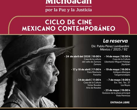 En el marco de las acciones del Plan Michoacán , la Secretaría de Cultura a través de Cineteca Nacional , presenta