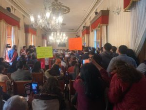 Durante la sesión estuvieron presentes comerciantes de los diferentes mercados y de la vía pública, quienes se manifestaron en contra de la decisión del Ayuntamiento al rechazar la propuesta de la comisión de Servicios Públicos, lo que provocó una serie de abucheos y escándalo en el salón de pleno, por lo que se pidió al secretario de Seguridad Ciudadana, Samuel Ugalde García, desalojar el espacio, terminando la sesión solo con los integrantes del cabildo y medios de comunicación y a puerta cerrada.