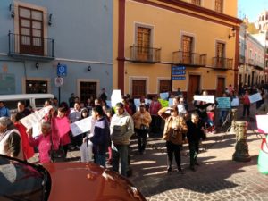 Cerca de 50 inconformes, varios con pancartas en mano, caminaron por Plaza de la Paz hasta llegar frente al templo de la Compañía, ahí cerraron el acceso a los automovilistas por más de una hora.