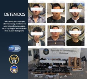 Irapuato, Gto. 15 de febrero de 2020.- Acciones conjuntas entre la Fiscalía General del Estado y la Secretaría de Seguridad Pública del Estado, ha permitido desmantelar dos “casas de seguridad” en la ciudad de Irapuato, a través de cateos donde se aseguraron importantes arsenales y explosivos, drogas y equipo táctico, además de la detención de seis personas, miembros de un grupo criminal.