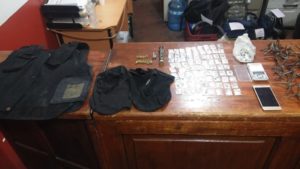 También se le aseguró un arma de fuego de fabricación casera, 21 cartuchos útiles de diferentes calibres, una báscula, dos pasamontañas, 32 estrellas para ponchar llantas y un chaleco balístico.