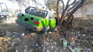 En un recorrido de vigilancia por la comunidad Hacienda de Guadalupe, los uniformados ubicaron el vehículo de alquiler que había chocado con un árbol a un costado del camino.