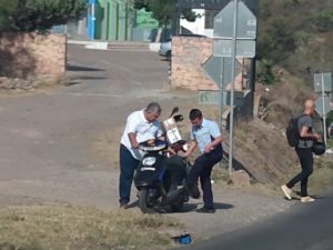 Guanajuato, Gto 11 de marzo de 2020. Una menor de edad resultó lesionada al derrapar la motocicleta que tripulaba en la carretera a Marfil.