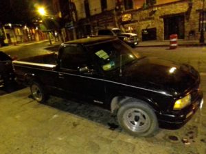 Durante de un recorrido de seguridad y vigilancia policías municipales ubicaron a tres personas sospechosas a bordo de una camioneta color negro estacionada a un costado de las escalinatas de la plaza de toros, en Pueblito de Rocha. Otro hombre que estaba parado cerca de la puerta de la camioneta del lado del conductor, al ver la llegada de los oficiales se retiró rápidamente.