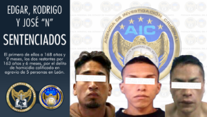 obtuvo ejemplares sentencias condenatorias contra Edgar, Rodrigo y José “N”; el primero de ellos pasará 168 años y 9 meses en prisión, los dos restantes deberán purgar condena por 163 años y 6 meses, al haber sido encontrados culpables de homicidio calificado en agravio de 5 personas en León.