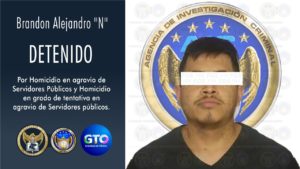 Apaseo el Alto, Gto. Derivado de un operativo conjunto entre Agentes de la Agencia de Investigación Criminal y elementos de la Secretaría de Seguridad Pública del Estado (SSPE) se logra la captura de Brandon Alejandro “N”, jefe de célula criminal que participó en el ataque en contra de elementos de la SSPE que perdieron la vida el pasado 3 de julio en la carretera Apaseo El Alto-Jerécuaro.