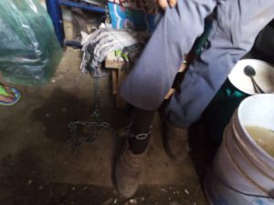 Los primeros reportes indican que era encadenado de los tobillos a la cama, con el argumento que era para controlar el alcoholismo que padece y las alucinaciones que sufre.