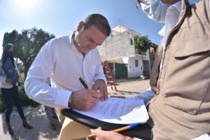 Al no poderse realizar eventos masivos, el alcalde fue a la colonia Valle de San José finalizando el primer paquete de 100 escrituraciones desde que inició su administración, comprometiéndose a entregar otras 100 escrituras más antes de que concluya el 2020.