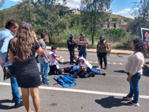 Guanajuato, Gto. Un joven motocicleta, no alcanzó a ver un tope recién colocado en la salida del acceso Diego Rivera y derrapó.