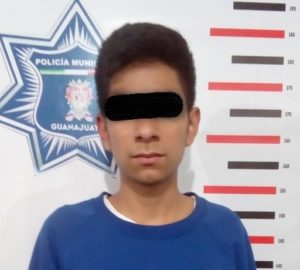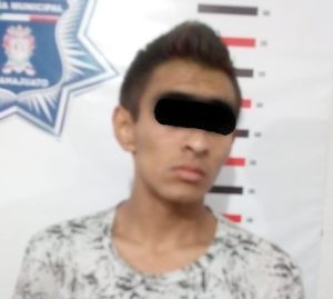 Guanajuato, Gto.- Policías municipales detuvieron a dos jovencitos y a un hombre por portación de una réplica de arma de fuego y residuos de droga.