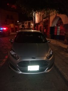 En el lugar encontraron un vehículo Fiesta, color gris, con placas de circulación GMC-846-B, atravesado a media carretera y observaron a dos hombres en el interior y otro más afuera del automóvil, el cual parecía que los estaban revisando.