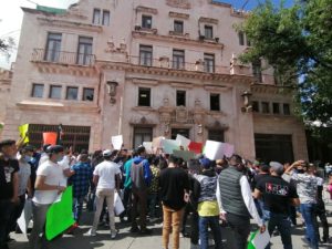Guanajuato, Gto. Integrantes de la asociación de los Centros de Rehabilitación Unidos del Bajío (CRUB) se manifestaron a fuera del Palacio de Gobierno para exigir la reapertura de los espacios en los que trabajan y han sido cerrados por no contar con sus papeles.