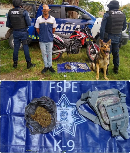 En la colonia Mi Ranchito, del municipio de Irapuato, se localizaron 8 mil 182 dosis de cristal. En una acción adicional, se localizaron 5 mil dosis de cristal en la colonia 1º. de Mayo. En este mismo municipio, en la prolongación Abasolo – Rancho el Guayabo, se realizó la detención de 4 personas del sexo masculino a quienes se les aseguraron: 3 armas largas, 164 cartuchos, 4 chalecos balísticos, 8 placas balísticas, 2 cargadores, 2 artefactos explosivos, 4 cascos kevlar, 6 cartucheras, 1 vehículo y 3 celulares.