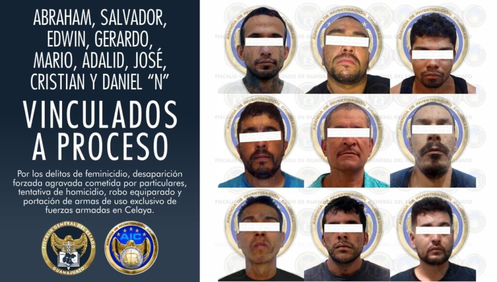 Celaya, Gto. La Fiscalía General del Estado (FGE), a través de la Fiscalía Especializada en Investigación de Delitos de Alto Impacto llevó ante un Juez a 9 sujetos, integrantes de una célula criminal autodenominada de “Elite”, detenidos en Rincón de Tamayo en Celaya tras agredir a disparos a elementos de las Fuerzas de Seguridad Pública del Estado (FSPE ) el pasado 9 de octubre.