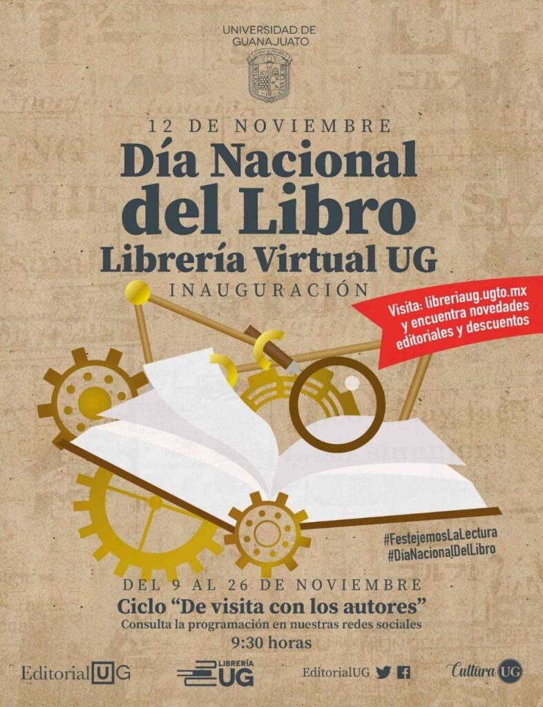 Cabe recordar que las actividades en el marco al Día Nacional del Libro se llevarán a cabo del 9 al 26 de noviembre y este ciclo tendrá estrenos los lunes, miércoles, viernes y sábados en punto de las 19:00 h. Sin embargo, gracias a la virtualidad el programa podrá ser consultado en cualquier momento después de su publicación, a través de las redes sociales: Universidad de Guanajuato; Editorial UG y Cultura, Universidad de Guanajuato.