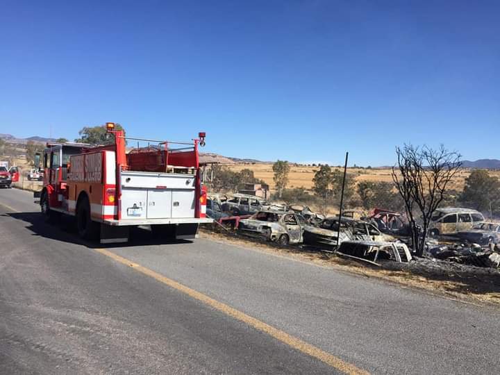 Algunos automóviles sufrieron daños parciales otros casi quedaron calcinados en su totalidad, además de autopartes que se encontraban dispersas en el lugar resultaron afectadas por las llamas.