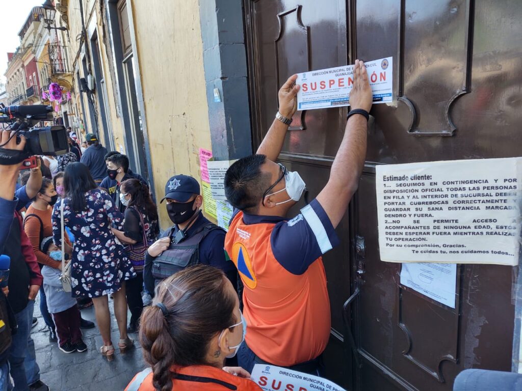 Guanajuato, Gto. La dirección de Protección Civil Municipal de Guanajuato llevó a cabo la suspensión de dos tiendas departamentales “Elektra” en la zona centro de la ciudad por no cumplir con las medidas de sanidad y no contar con un protocolo de contingencia.