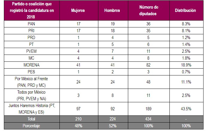 De igual forma, con base en el registro de candidaturas para el proceso electoral 2017-2018, se trata de 406 diputaciones propietarias y 28 suplentes. En este último caso, las personas suplentes han asumido el cargo y se encuentran en funciones.