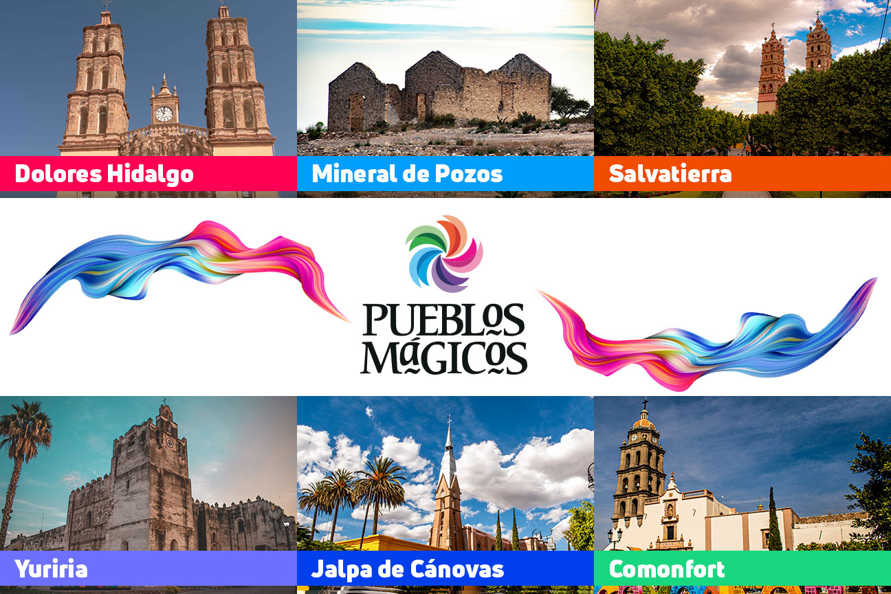 Comonfort, Jalpa de Cánovas, Salvatierra, Dolores Hidalgo, Yuriria, Mineral de Pozos, son las poblaciones del estado que actualmente cuentan con la denominación federal de Pueblos Mágicos.