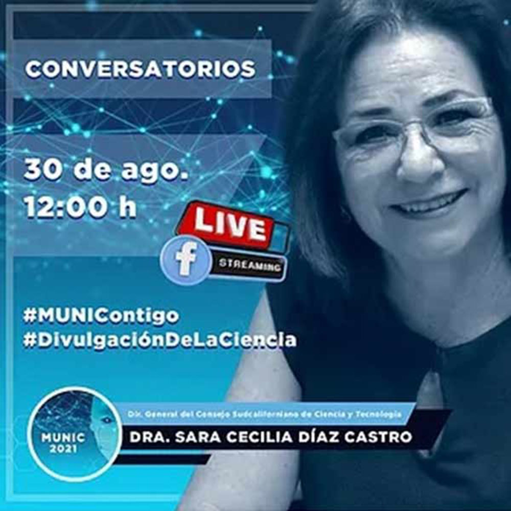 En comunicado de prensa, se informó que, como parte de la Sexta Muestra Nacional de Imágenes Científicas #MUNIContigo, el 30 de agosto continúa la serie de conversatorios con mujeres dedicadas a la #Ciencia y su divulgación, por lo que estará presente la Dra. Sara Cecilia Díaz Castro, investigadora del Centro de Investigaciones Biológicas del Noroeste, la transmisión se puede seguir en punto de las 12:00 horas a través del FB @Cultura UG.