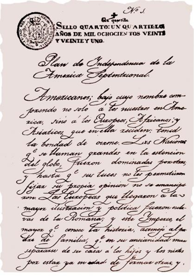 Trescientos años hace la América Septentrional de estar bajo la tutela de la Nación más católica y piadosa, heroica y magnánima. La España la educó y engrandeció, formando esas ciudades opulentas, esos pueblos hermosos, esas provincias y reinos dilatados, que en la historia del Universo van a ocupar un lugar muy distinguido, aumentándose las poblaciones y las luces, conocidos todos los ramos de la natural opulencia del suelo, su riqueza metálica, las ventajas de su situación topográfica, los daños que origina la distancia del centro de unidad y viendo que la rama es igual al tronco: la opinión pública y la general de todos los pueblos, es la independencia absoluta de la España y de toda otra Nación. Así piensa el europeo, y así los americanos de todo origen.