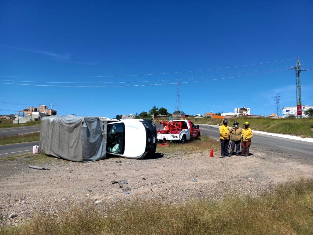 El chofer de la camioneta perdió el control de la unidad, continuó avanzando unos metros y la unidad quedó volcada sobre su lado izquierdo.