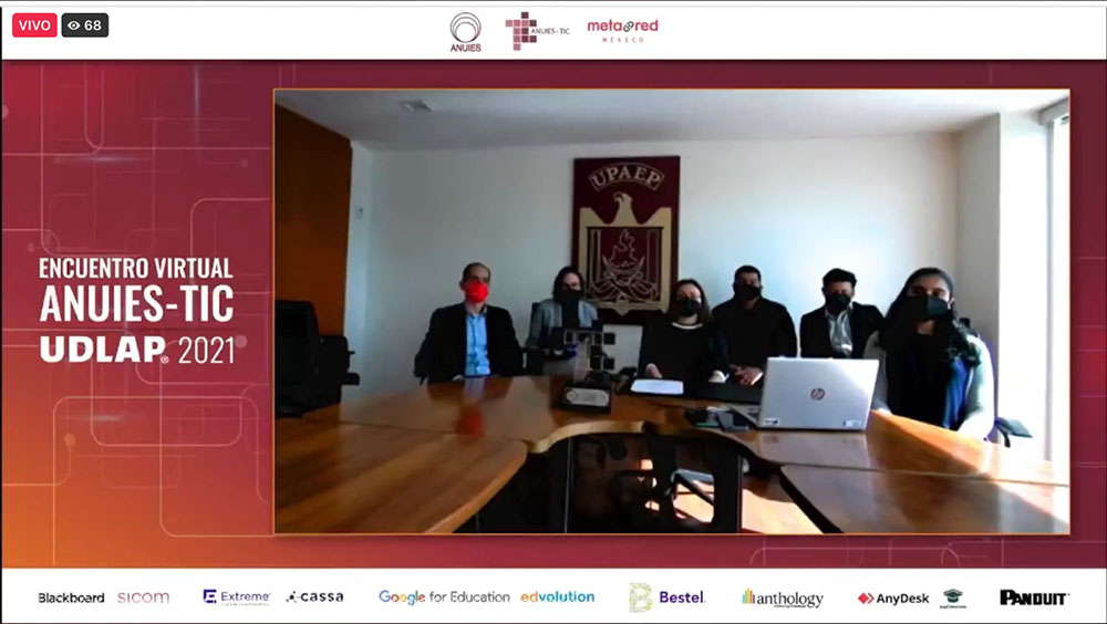 La entrega de reconocimientos se llevó a cabo en el Encuentro Virtual ANUIES-TIC UDLAP 2021, «Perspectivas y retos de la educación digital en las instituciones de educación superior». En la sesión participaron de forma virtual también la Dra. Cecilia Ramos Estrada, Secretaria General de la UG, el Dr. Sergio Antonio Silva Muñoz, Secretaria Académico; el Dr. Salvador Hernández Castro, Secretario de Gestión y Desarrollo; del Titular Unidad de Apoyo al Desarrollo Educativo, Mtro. David Cabrera Ruiz; y del Director de Servicios y Tecnologías de la Información, Mtro. Guillermo Carrillo Gallardo.