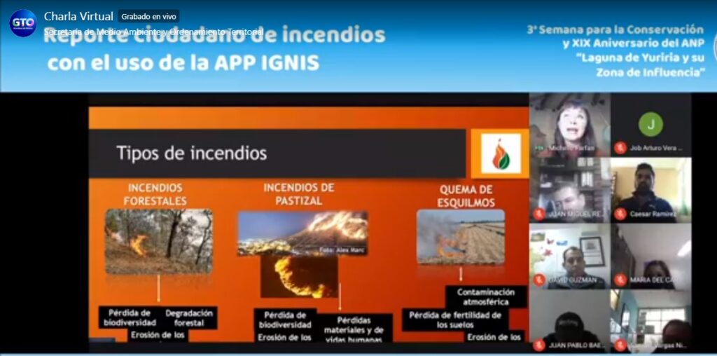 Dentro de la línea de investigación que mantiene la Dra. Farfán Gutiérrez, se ha contemplado una aplicación de reporte ciudadano de incendios denominada “IGNIS”, la cual permite dar una respuesta oportuna por parte de las autoridades a los incendios forestales del Estado. “IGNIS” es de uso gratuito y descargable en IOS y Android.