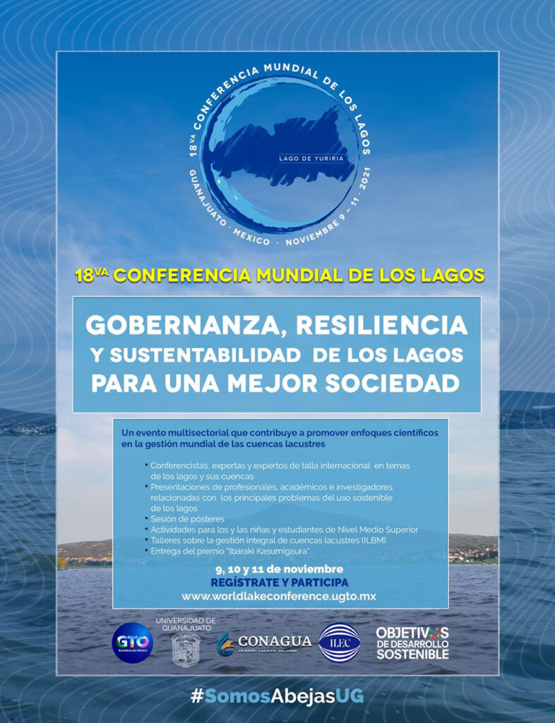 Guanajuato, Gto.- La Universidad de Guanajuato (UG) será sede de la 18ª Conferencia Mundial de los Lagos, del 9 al 11 de noviembre de 2021, evento que contará con la participación de 50 países de los cinco continentes y más de un centenar de proyectos, que enriquecerán la colaboración en el flujo de ideas para la conservación de los diversos cuerpos de agua en el mundo.
