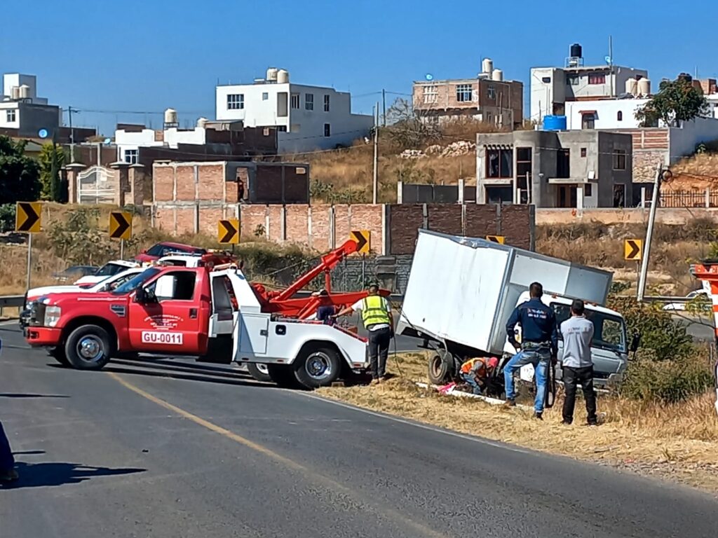 El conductor de un camión de tres toneladas y media, perdió el control del volante al entrar a una curva prolongada en la carretera de Santa Teresa-Cuevas, en Guanajuato capital.