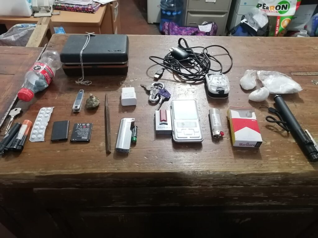 Pidieron a los tres pasajeros que descendieran del vehículo y al revisarlos les encontraron varios celulares de los que no pudieron acreditar su propiedad, dinero en efectivo un bastón táctico, varias dosis de la llamada droga cristal y juegos de llaves, así como diversos objetos.