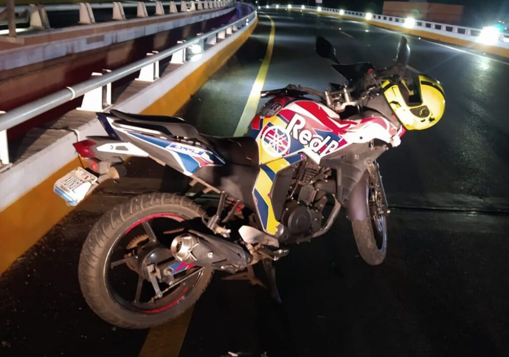 Encontraron al joven herido abajo del puente, mientras que la motocicleta permanecía arriba, además junto a la motocicleta encontraron el casco, por lo que se presume que el afectado no lo llevaba puesto.