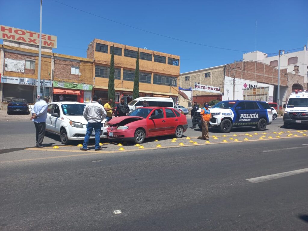 El primer accidente ocurrió en la carretera libre Guanajuato-Silao, justo en el entronque de Santa Teresa, cuando el operador de un autobús de pasajeros de la línea Flecha Amarilla no se detuvo y chocó por alance contra la parte trasera de un automóvil particular.