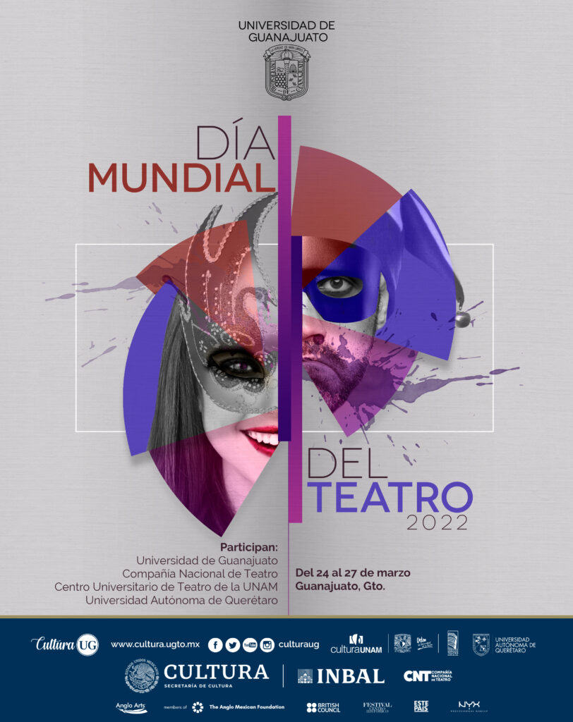 Guanajuato, Gto.- La Dirección de Extensión Cultural de la Universidad de Guanajuato (UG), ofrecerá del 24 al 27 de marzo un programa con diversas funciones artísticas, talleres y conversatorio entorno al Día Mundial del Teatro 2022, para la comunidad universitaria y público en general.