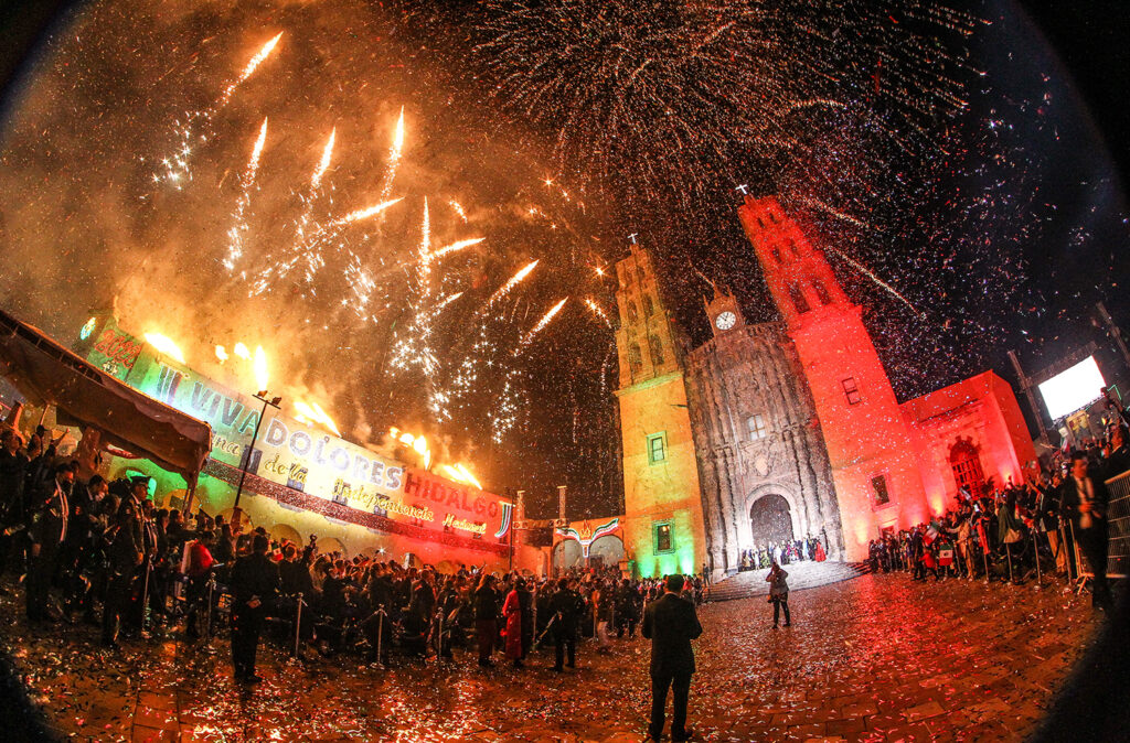 Las notas del Himno Nacional Mexicano cimbraron el centro de Dolores. Luego los juegos pirotécnicos iluminaron el cielo acompañadas con la voz de ‘El Hijo del Pueblo’, José Alfredo Jiménez.