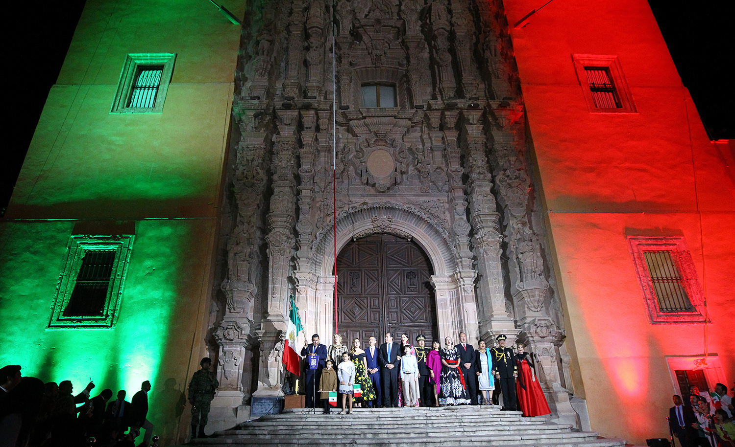 El escenario de la ceremonia fue el atrio de la Parroquia de Nuestra Señora de los Dolores, donde hace 212 años, el Cura Don Miguel Hidalgo y Costilla, llamara al pueblo de Dolores a levantarse contra la opresión y reclamar los derechos de libertad, justicia e igualdad para los mexicanos.