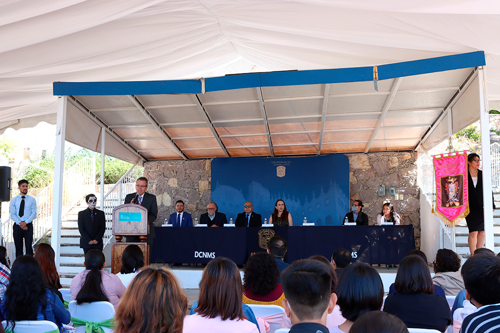 El mensaje de bienvenida estuvo a cargo del Dr. Jesús Raúl Lugo Martínez, Secretario Académico del Colegio del Nivel Medio Superior, quien se mostró gustoso por ver a estudiantes, profesores y profesoras ya que ellos hacen posible dicho evento. De igual manera agradeció al Dr. Rizo, por ser promotor de dicha actividad para que las y los estudiantes tengan una formación integral. Reiteró que el evento es de gran trascendencia para el CNMS.