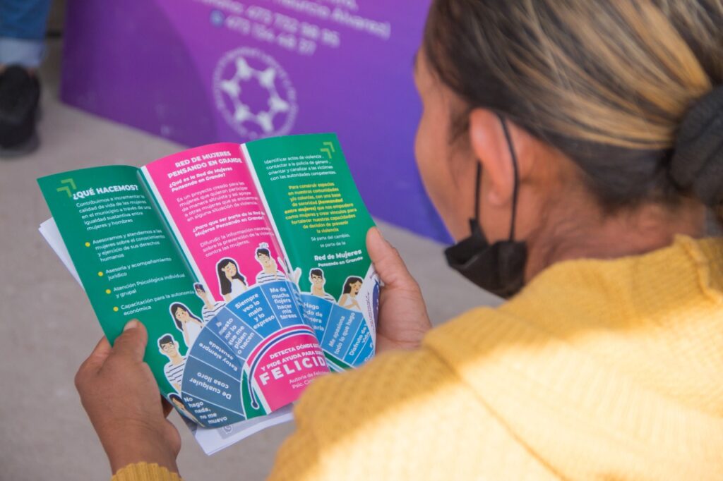 La caravana “Mujeres pensando en grande” se lleva cada viernes a una comunidad rural del municipio y este 21 de octubre llegó a Capulín de Bustos, donde integrantes de la asociación civil “Reto Guanajuato” impartieron una plática sobre autoexploración y cómo detectar síntomas de manera oportuna, ya que un diagnóstico temprano puede salvar la vida.