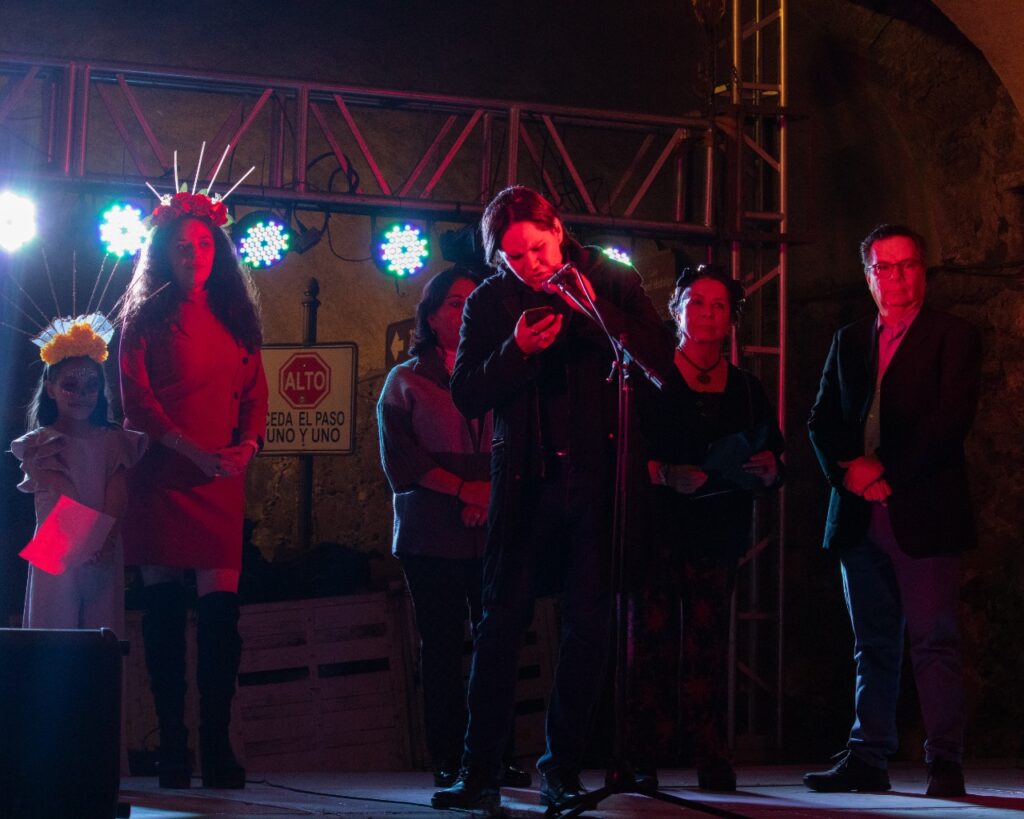 En una ceremonia especial realizada este jueves en la subterránea, en el marco del festival “Un túnel de Tradición”, los tres leyeron sus calaveritas y recibieron sus premios de manos del Presidente del Consejo Directivo del SIMAPAG, Héctor Morales Ramírez, de la secretaria del Ayuntamiento, Martha Isabel Delgado Zarate y del cronista José Eduardo Vidaurri Aréchiga.