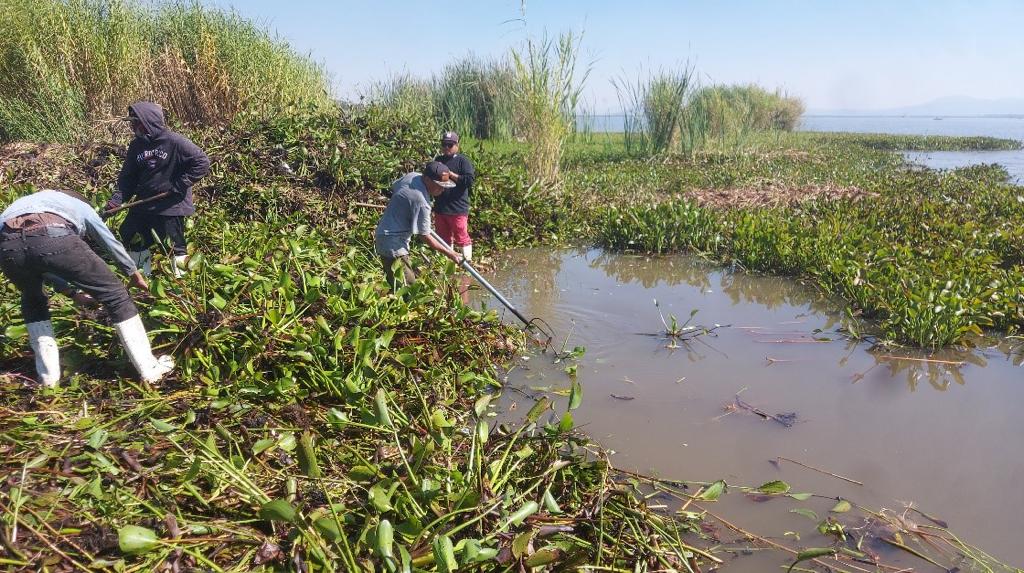 Con la participación de 97 personas de comunidades aledañas a la Laguna, se implementaron trabajos de control manual de lirio acuático en 29.33 hectáreas, con una inversión de 880 mil pesos.