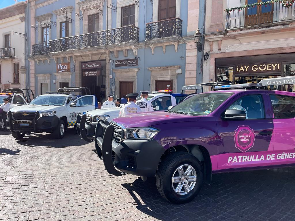 Autoridades municipales entregaron cuatro patrullas a la Policía Municipal de Guanajuato capital, que servirán para reforzar el trabajo que realizan los elementos en la ciudad.