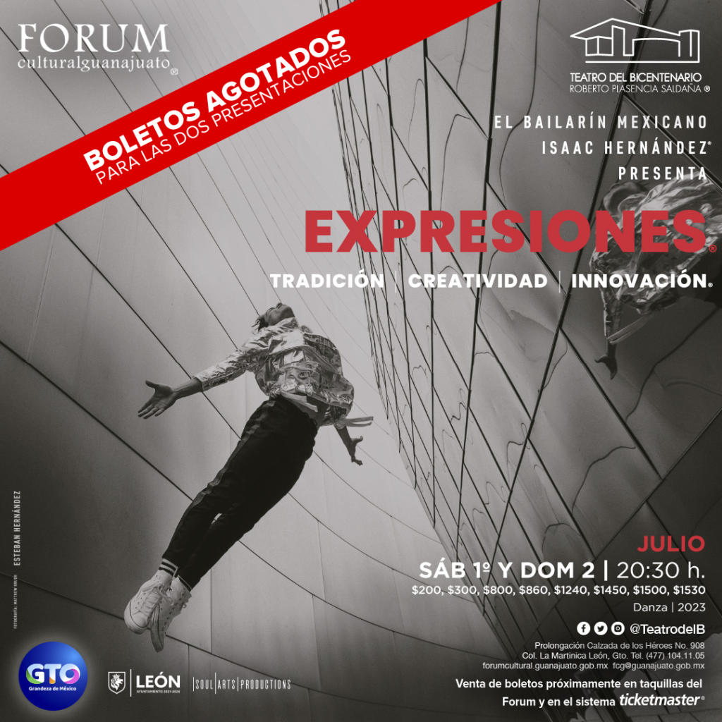 León, Gto.- . El Forum Cultural Guanajuato agradece al público que agotó los boletos del espectáculo Expresiones, del aclamado bailarín mexicano Isaac Hernández.