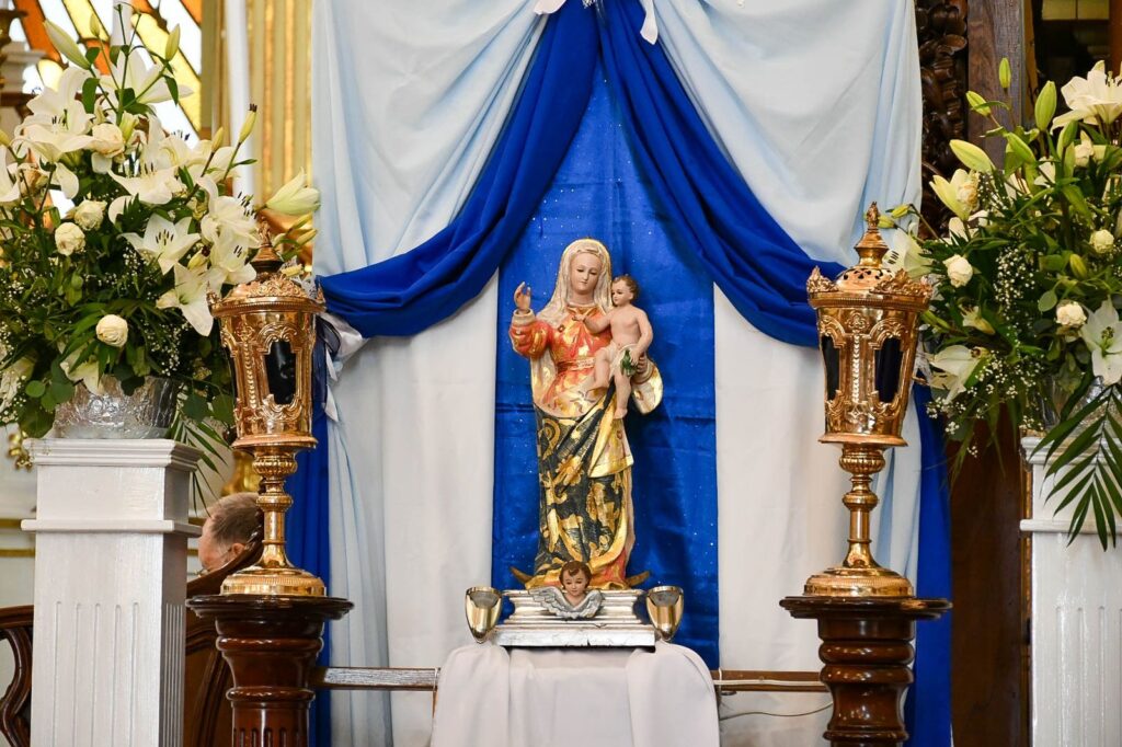 Guanajuato, Gto. Autoridades municipales, eclesiásticas, asociaciones civiles y feligreses, celebraron una misa en la basílica colegiata de la capital, por la entrega de la escultura restaurada, de la Virgen de Nuestra Señora de Guanajuato.