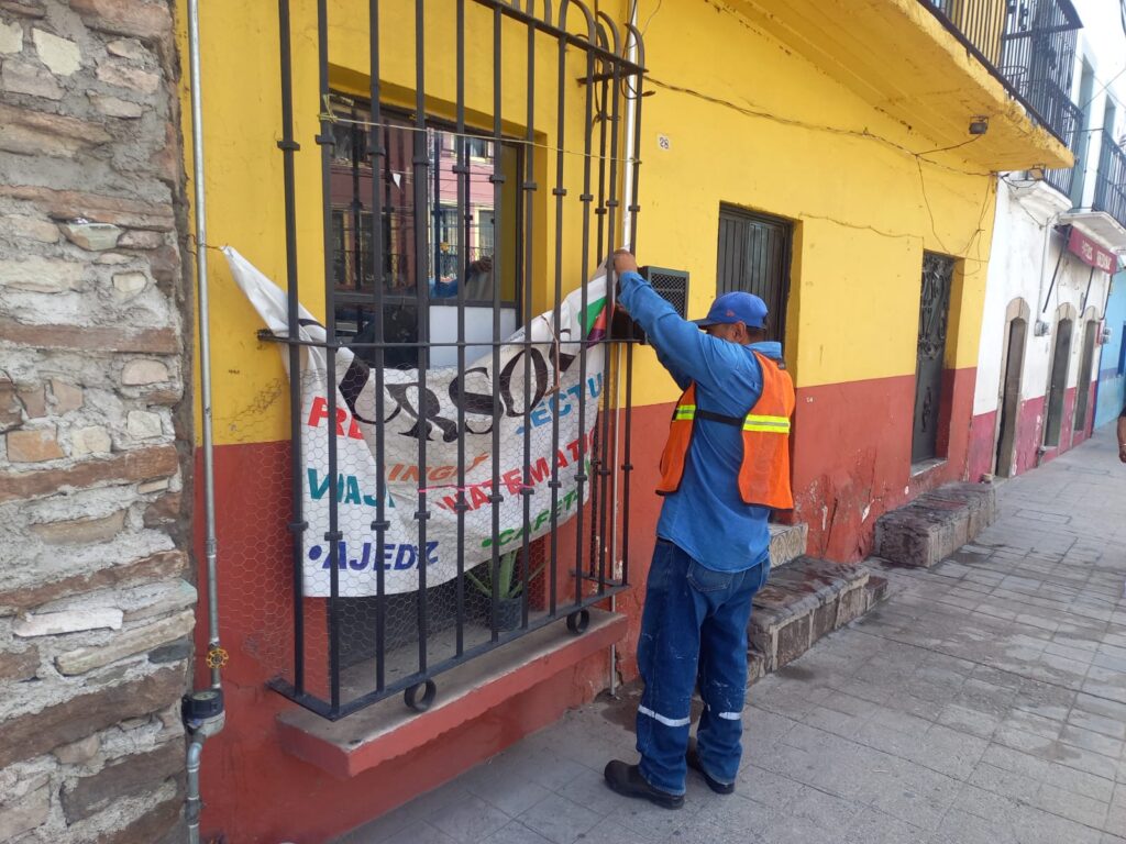 El operativo fue implementado por personal de la Dirección General de Servicios Públicos y la Unidad de Gestión del Centro Histórico, además se retiraron letreros y anuncios adheridos a postes, mamparas y mobiliario urbano.