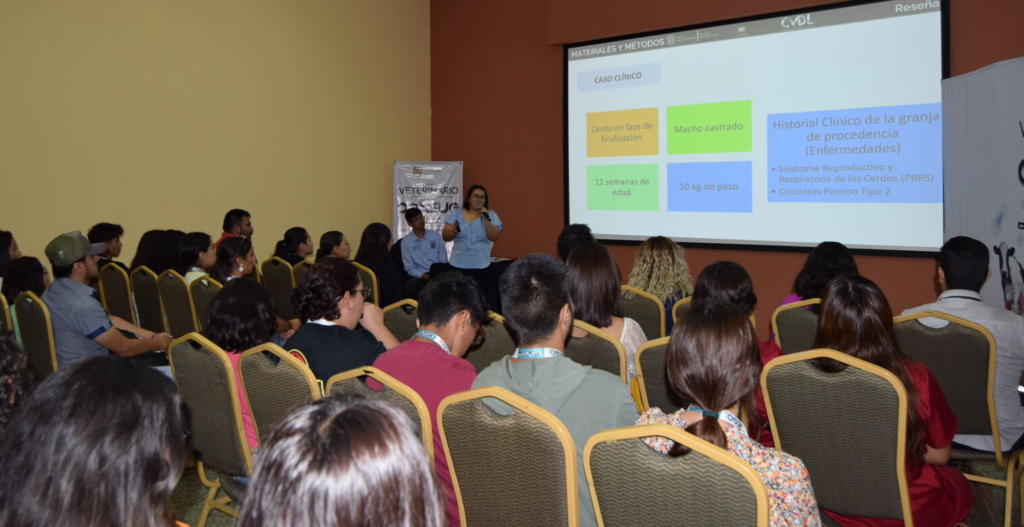 Respecto a los casos clínicos, se compartieron los de intoxicación por solvente industrial en cerdo en fase de engorda, del protocolo preventivo para la artritis séptica neonatal equina, de la frecuencia de piroplasmosis equina, que es una enfermedad transmitida por garrapatas y del estudio de un adenoma o tumor benigno perianal en canino.