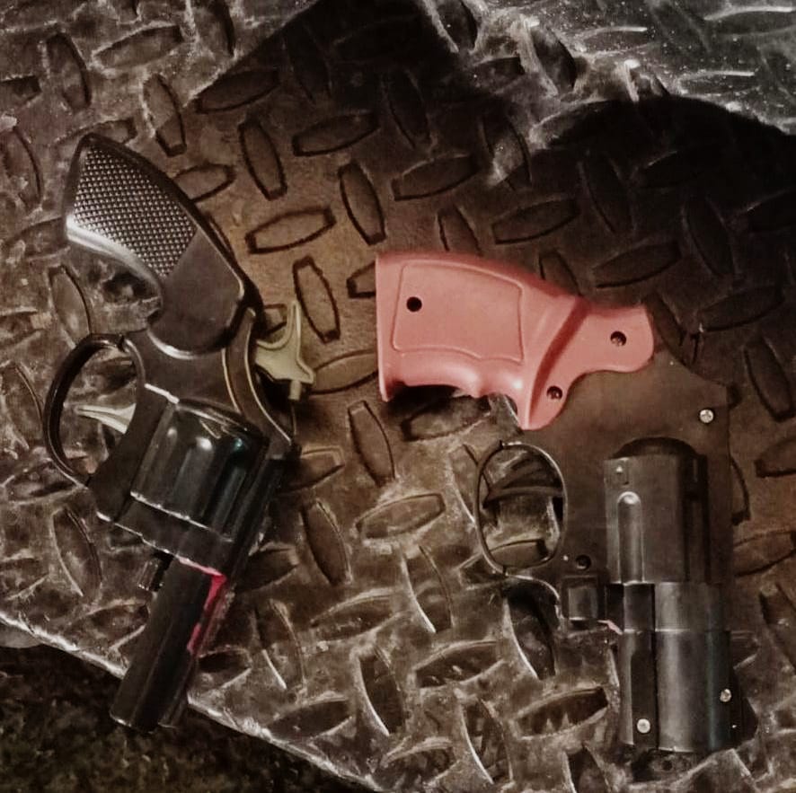 En dicho lugar, los policías vieron a un joven con líquido hemático sobre su cara y, al abordarlo para descartar riesgos, éste se mostró agresivo. Tras la inspección preventiva, se le encontraron dos pistolas de plástico tipo revólver de juguete y un chaleco balístico con letras engrapadas y un bordado con la leyenda «Policía Municipal» en la parte frontal.