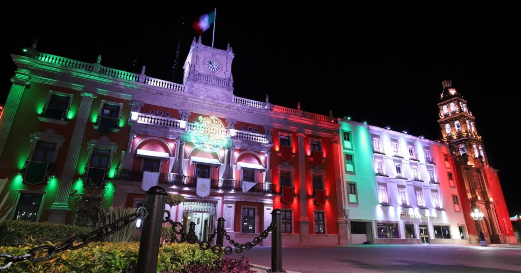 Entre los lugares que puedes admirar con los colores patrios se encuentran el Arco de la Calzada, un símbolo de la identidad leonesa que data de 1896; la fachada de Presidencia Municipal, un edificio neoclásico construido en 1928.