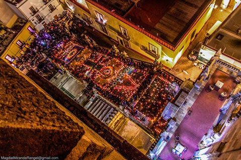 Este año el altar de las escalinatas de la Universidad de Guanajuato cumple 22 años de que se realiza, con el apoyo de alumnos de la Escuela de Educación Media Superior y ayuda de los maestros de la Preparatoria y de la administración municipal.