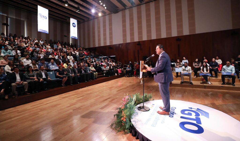 Guanajuato, Gto. El Gobernador de Guanajuato, Diego Sinhue Rodríguez Vallejo, entregó las Becas Reconocimiento del Ciclo Escolar 2023-2024 a docentes que realizaron estudios de especialidad, maestría o doctorado para mejorar su práctica educativa.