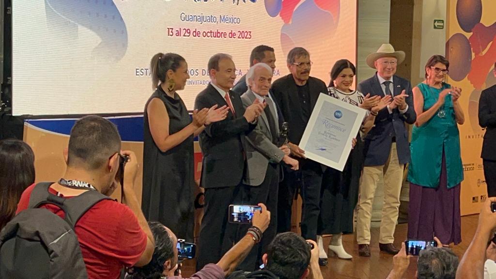 Guanajuato, Gto. En el marco de la celebración 51 del Festival Internacional Cervantino, autoridades federales y de Guanajuato hicieron la entrega de la Presea Cervantina para reconocer a grandes artistas, teniendo como escenario el museo de la Alhóndiga de Granaditas.